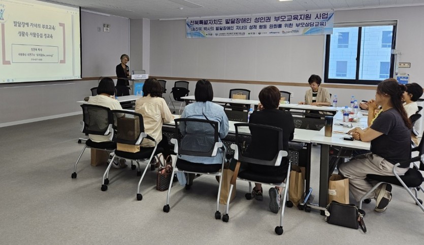 2024년 전북특별자치도 발달장애인 [성인권]부모교육지원 사업 - 발달장애인 부모의 성고충 완화를 위한 상담 부모회 0 251 2024.06.10 11:04 2024년 전북특별자치도 발달장애인 [성인권]부모교육지원 사업 - 발달장애인 부모의 성고충 완화를 위한 상담 6월4일 진행된 부모교육 진행 사진 입니다.